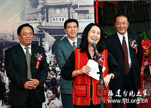 臺(tái)灣知名人士高金素梅女士出席開幕式,她首先用閩南話向與會(huì)群眾問好。她在致辭中說,參加本次圖片文物特展只是個(gè)開始,以后有機(jī)會(huì)愿意把自己在臺(tái)灣收集到的文物資料等贈(zèng)給中國閩臺(tái)緣博物館,并希望通過老照片和文物的展示,讓年輕一代更深入地了解歷史,進(jìn)一步加強(qiáng)兩岸的交流合作。她還對(duì)參加開幕式上許多青年學(xué)生的到來感到非常高興,希望學(xué)生們認(rèn)真地參觀,了解歷史,了解我們的過去。