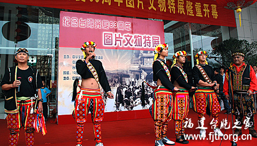 開幕式上,由高金素梅女士率領(lǐng)的臺(tái)灣“飛魚云豹”樂團(tuán)為來賓即興表演了具有濃烈民族風(fēng)情的歌舞。下午,“飛魚云豹”樂團(tuán)還專門為將來參觀的“紀(jì)念臺(tái)灣光復(fù)六十三周年圖片文物特展”的群眾表演了臺(tái)灣原住民族的傳統(tǒng)歌舞,并與觀眾開展了臺(tái)灣歷史及原住民族知識(shí)等的良好互動(dòng),把普及臺(tái)灣歷史文化知識(shí)、臺(tái)灣原住民風(fēng)俗與臺(tái)灣原住民歌舞融為一體,使整個(gè)特展活動(dòng)有聲有色、精彩紛呈。