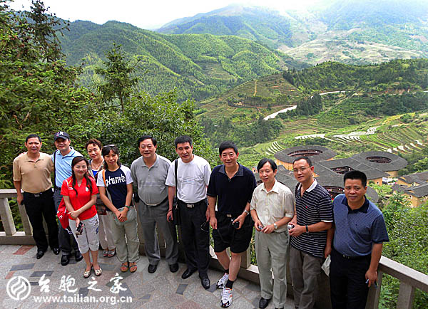 還饒有興趣地參觀了臺灣知名人士呂秀蓮的祖籍“龍?zhí)稑恰蓖翗?。?jù)悉,呂家開臺祖先呂廷玉于1740年(清乾隆五年),從福建龍?zhí)稑?客家土樓式建筑),攜妻子余慈成,東渡臺灣桃園縣埔子墾荒,至今子孫已有六、七千人。