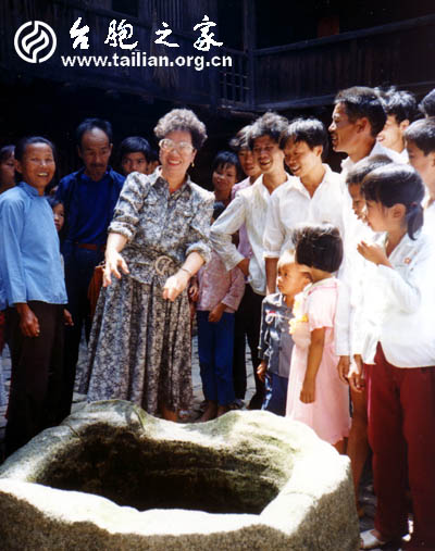 呂秀蓮女士曾于1990年7月回到福建省南靖的祖籍地祭祖,在“龍?zhí)稑恰蓖翗莾?nèi)親手打上一桶井水并與家鄉(xiāng)的父老鄉(xiāng)親合影留念。(福建省臺聯(lián) 陽夏)