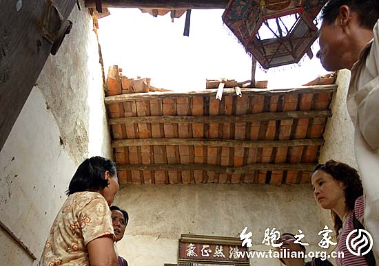 困難臺胞林瑞葉的房屋損毀嚴重(攝影 陽夏) 臨別時,柯連妹副會長代表省臺聯(lián)向林瑞葉老大娘送上慰問款。(福建省臺聯(lián) 陽夏)