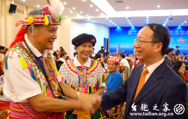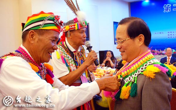 全國臺聯(lián)副會長陳耀中與臺灣少數(shù)民族朋友相見恨晚(攝影:鄭嵐)