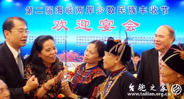 席間,兩岸少數(shù)民族頻頻舉杯,共敘親情、友情?!拔业募亦l(xiāng)在花蓮”“我的家鄉(xiāng)也是花蓮”同鄉(xiāng)、同族比比皆是,親上加親的手緊緊相握。相約回家看看、來大陸走走,更不絕于耳。