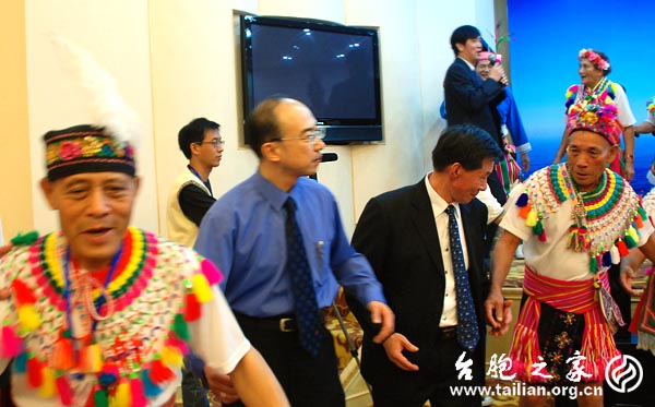 全國臺聯(lián)副會長紀(jì)斌等領(lǐng)導(dǎo)與臺灣少數(shù)民族朋友合影(攝影:鄭嵐)