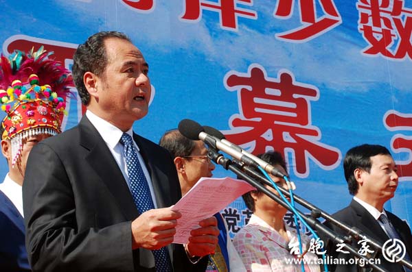 全國臺聯(lián)副會長紀(jì)斌致辭,對來自海峽兩岸少數(shù)民族的到來表示熱烈的歡迎,希望隨著兩岸少數(shù)民族交流的不斷深入,兩岸少數(shù)民族的相互了解不斷加深,為兩岸關(guān)系和平發(fā)展作出新的努力。