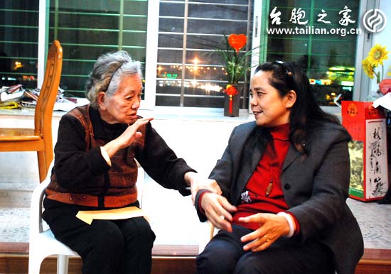 1月31日晚,省臺聯(lián)柯連妹副會長一行首先在泉州看望了86歲的老臺胞潘汝萍。潘汝萍老人26歲時(1949年)隨家人到大陸探親,卻因戰(zhàn)事與高雄的老家一別至今。身體還硬朗的潘汝萍老人緊緊拉著柯副會長的手,充滿深情地說:“現(xiàn)在大家生活好了,我最大的愿望就是能再看看臺灣家鄉(xiāng)的一草一木,看看高雄的老街舊景,會會兒時的朋友”??赂睍L囑咐老人一定要養(yǎng)好身體,爭取回高雄看看。柯副會長與潘汝萍老人用家鄉(xiāng)話聊家常,話兩岸情深,情意濃濃,逗得老人樂開懷。