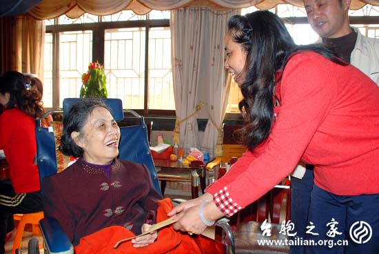 在石獅市,省臺聯(lián)領導一行還看望了82歲高齡的臺胞葉素桂老人,葉老太患病后,十多年來癱瘓在家,多年來得以各級臺聯(lián)和當?shù)嘏_辦領導的關(guān)心和家人長期的悉心照料,老人頑強與病患作斗爭,屢次戰(zhàn)勝病魔,其樂觀精神和堅強意志令人欽佩??赂睍L與老人親切交談并送上慰問金,激勵老人勇敢生活并送上深深的新春祝福。