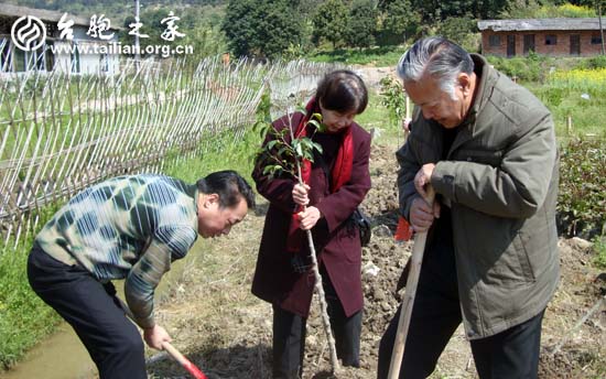 省臺聯(lián)秘書長、支部書記張巖(左)帶領(lǐng)大伙植樹忙(蔡碧英 攝影)