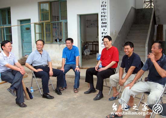 泰寧縣朱口鎮(zhèn)赤坑村,是三明市委統(tǒng)戰(zhàn)部和市臺(tái)聯(lián)的掛點(diǎn)村。葉副會(huì)長(zhǎng)來到赤坑村,即冒著烈日,在村部大院與村兩委干部和三明市臺(tái)聯(lián)掛村干部座談。村書記和村主任都是地道的農(nóng)民,看到從省城下來的官兒,都有些措手不及,只是憨厚地笑著,一時(shí)不知說什么好。葉副會(huì)長(zhǎng)見狀,親熱地拉他們一起坐下,家長(zhǎng)里短地與他們拉家常,并合影留念。