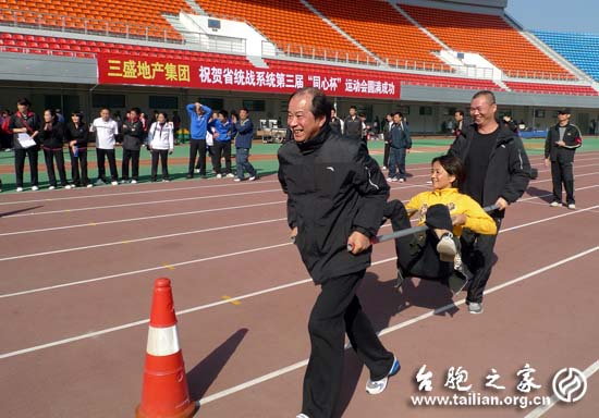 省臺(tái)聯(lián)在趣味接力”抬新娘“比賽中 攝影/鄭嵐 本屆運(yùn)動(dòng)會(huì)共有統(tǒng)戰(zhàn)部機(jī)關(guān)、各民主黨派、工商聯(lián)、臺(tái)聯(lián)、綜合隊(duì)等12支代表隊(duì)參賽。項(xiàng)目共設(shè)拔河、趣味接力、飛鏢、呼拉圈、籃球接力等項(xiàng)目。