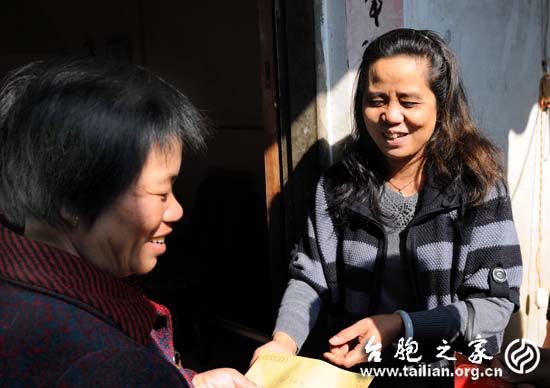 臺(tái)胞之家網(wǎng)訊:2011年新年上班第一天,省臺(tái)聯(lián)領(lǐng)導(dǎo)再次分赴各地慰問(wèn)臺(tái)胞。4日-7日,省臺(tái)聯(lián)柯連妹副會(huì)長(zhǎng)一行在漳州市臺(tái)聯(lián)副會(huì)長(zhǎng)葉香雪的陪同下趕赴云霄、詔安、東山等地,慰問(wèn)困難臺(tái)胞,調(diào)研省臺(tái)聯(lián)困難臺(tái)胞、高齡、助學(xué)等補(bǔ)助款發(fā)放情況。