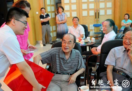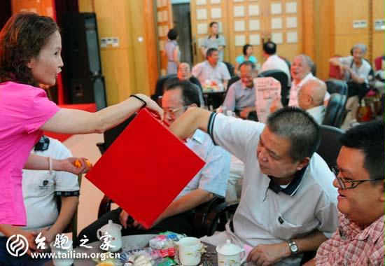 省臺(tái)聯(lián)原會(huì)長、省臺(tái)聯(lián)名譽(yù)會(huì)長、老臺(tái)胞楊玉輝為聯(lián)歡活動(dòng)抽獎(jiǎng) 攝影/鄭嵐
