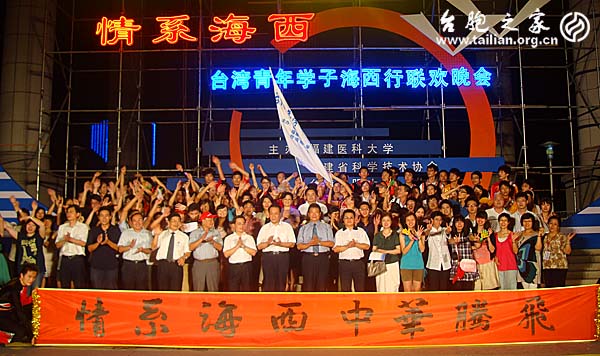 臺(tái)胞之家網(wǎng)訊:(攝影:周雄銘)7月5日晚,福建醫(yī)科大學(xué)在美麗的上街校區(qū)中心廣場(chǎng)舉辦了一場(chǎng)精彩紛呈、高潮迭起的聯(lián)歡晚會(huì)。包括該校70多位臺(tái)灣學(xué)生在內(nèi)的數(shù)百名師生和來自寶島臺(tái)灣14所大學(xué)的臺(tái)灣學(xué)生一起參加了聯(lián)歡活動(dòng)。省臺(tái)聯(lián)葉露昆副會(huì)長等省直機(jī)關(guān)有關(guān)部門領(lǐng)導(dǎo)應(yīng)邀觀看了晚會(huì)。