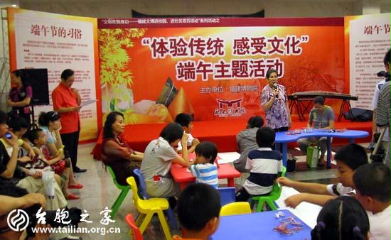 臺(tái)胞之家網(wǎng)訊:6月6日(端午節(jié))下午,為了弘揚(yáng)民俗文化,福建省政協(xié)特邀委員、臺(tái)灣畫家吳清菊女士帶領(lǐng)著四個(gè)臺(tái)灣家庭一行19人與福州華南優(yōu)教所實(shí)驗(yàn)小學(xué)、福州晉安區(qū)第二中心小學(xué)的部分師生一道,在省博物院體驗(yàn)福州端午民俗文化。