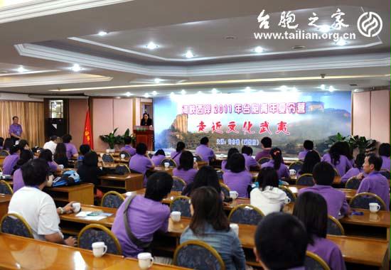 臺胞之家網(wǎng)7月15日上午訊:由福建省人大臺工委、省臺辦、省政協(xié)港澳僑臺和外事委員會、省海外聯(lián)誼會、省民革、省致公黨、省臺盟、省臺聯(lián)八家單位聯(lián)合舉辦的海峽西岸2011年臺胞青年夏令營暨全國臺聯(lián)臺胞青年千人夏令營福建分營,今天上午在武夷山開營。來自臺灣多所高校的近70名學(xué)生參加開營式活動。