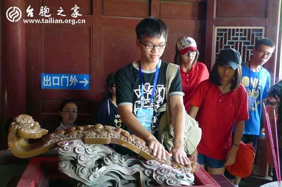 在島上,同學(xué)們有的在敬仰中燃香膜拜,有的撫摸“玉如意”保佑家人平安或?qū)W業(yè)、事業(yè)有成;有的來到“媽祖升天處”,在烈日下排著長隊,靜靜等候著與“媽祖娘娘”說句悄悄話。是祝福家人、朋友、愛情,還是祝愿兩岸和平、繁榮,這都是同學(xué)們心里的秘密,“天機”不可泄露啊。