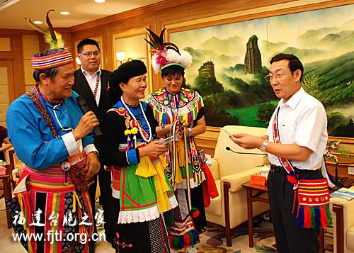 15日晚上,福建省委常委、宣傳部長(zhǎng)唐國(guó)忠會(huì)見(jiàn)了由臺(tái)灣少數(shù)民族人文關(guān)懷協(xié)會(huì)理事長(zhǎng)陳仕章率領(lǐng)的,前來(lái)參加首屆海峽兩岸少數(shù)民族豐收節(jié)活動(dòng)的臺(tái)胞。省委統(tǒng)戰(zhàn)部長(zhǎng)張燮飛、副部長(zhǎng)莊奕賢,省全國(guó)臺(tái)聯(lián)副會(huì)長(zhǎng)紀(jì)斌、福建省臺(tái)聯(lián)副會(huì)長(zhǎng)葉露昆在座。