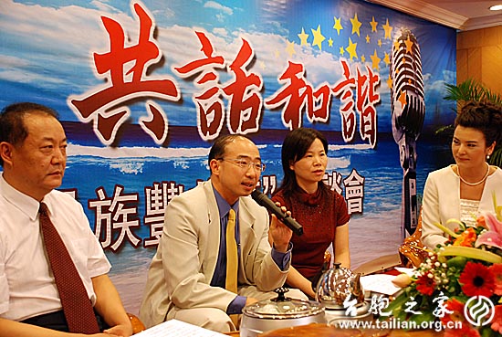 在2008年的首屆“豐收節(jié)”活動(dòng)中,全國(guó)臺(tái)聯(lián)紀(jì)斌副會(huì)長(zhǎng)(左2)與臺(tái)胞們座談