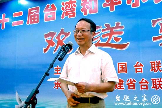 陳耀中代表大陸主辦方講話,他說,短短七天的訪問,臺灣小天使的足跡跨越福州、廈門,接受了中華優(yōu)秀傳統(tǒng)文化的熏陶。兩岸的孩子增進了友誼,這不僅因為他們說著同樣的語言,有著相近的愛好,更源于孩子們純真的正天性,能無所顧忌地敞開心扉、親睦友愛。他說,文化是維系民族感情的紐帶,綿延數(shù)千年的中華文化有著強大的生命力,能跨越時空的阻隔,接續(xù)兩岸人民的血脈親情。兩岸和平小天使互訪交流團活動作為兩岸青少年交流史上持續(xù)時間最長、年齡層次最低、影響面最廣的品牌交流活動,這座增進兩岸少年兒童情感交流的橋梁,越發(fā)寬闊。每一次的互訪活動都使兩岸小天使結下深厚的友誼,讓我們這些成年人倍感欣慰和喜悅,更增強了將這一活動延續(xù)下去的決心。讓我們珍惜并呵護小天使們這份珍貴的情誼,共同致力開創(chuàng)兩岸下一代和平友愛、兩岸關系和平發(fā)展的光明前景。