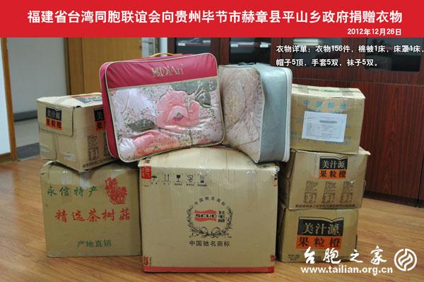 臺胞之家網福建臺聯訊:12月26日,福建省臺聯響應福建省委統戰(zhàn)部機關團委“關于向貴州省畢節(jié)市赫章縣平山鄉(xiāng)捐贈冬衣”的號召,全會機關干部職工踴躍開展“同心·冬日暖陽”捐贈活動。