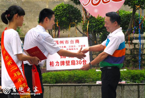省臺聯(lián)張巖秘書長代表臺商贈送掛扇三十臺 卓高翔/攝影
