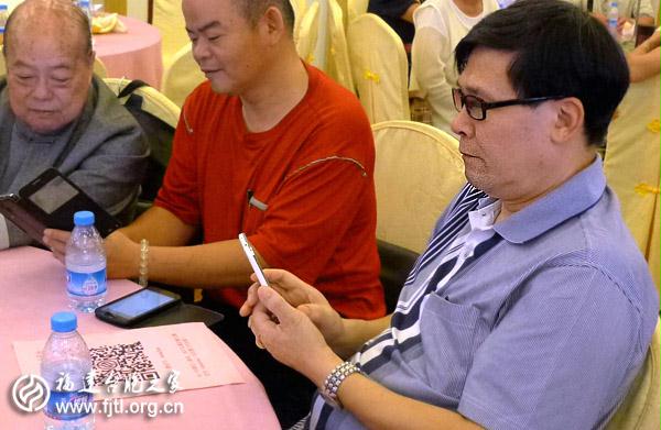 臺(tái)胞用手機(jī)掃描廈門市臺(tái)聯(lián)公眾號(hào)二維碼 王珊珊/攝影
