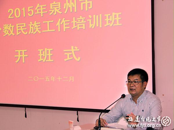 福建臺(tái)胞之家網(wǎng)訊: 為貫徹落實(shí)中央民族工作會(huì)議和省民族工作會(huì)議精神,更好地服務(wù)少數(shù)民族同胞,12月1日-2日,由泉州市民宗局、泉州市臺(tái)聯(lián)聯(lián)合主辦的民族工作培訓(xùn)班、少數(shù)民族經(jīng)濟(jì)發(fā)展培訓(xùn)班分別在泉州師院、刺桐酒店正式開(kāi)班,活動(dòng)范圍覆蓋高山族、回族、畬族等多個(gè)少數(shù)民族。市臺(tái)聯(lián)陳嚴(yán)輝會(huì)長(zhǎng),市民宗局蘭德志副局長(zhǎng)、倪安娜副調(diào)研員出席開(kāi)班儀式。
