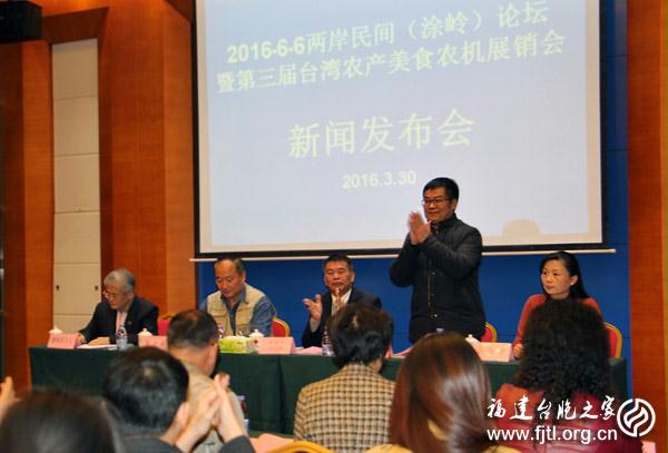 福建臺(tái)胞之家網(wǎng)訊: 3月30日上午,海峽兩岸中小企業(yè)聯(lián)合促進(jìn)會(huì)召開新聞發(fā)布會(huì),介紹2016年“6.6兩岸民間(涂嶺)論壇暨第三屆臺(tái)灣農(nóng)副產(chǎn)品展銷訂貨會(huì)”的籌備情況。