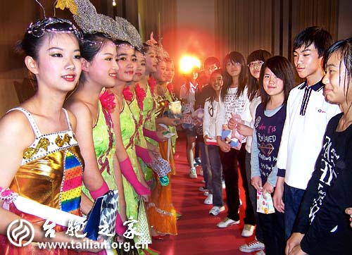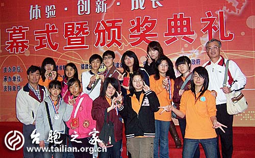 在第4屆省科技創(chuàng)新大賽上金門隊(右)與對手交換禮物 28日上午,組委會在龍巖一中舉辦“閩臺青少年科技教育論壇”。兩岸教師交流校園科技活動心得,探討兩岸不同的科技教育經(jīng)驗。選手們在賽事之余,相互觀摩項目,切磋技藝,談學(xué)習(xí)聊生活,短短幾天已結(jié)下深深的同學(xué)情。分別之際,大家互贈小禮物,互相留了MSN、Email,相約來年再聚。