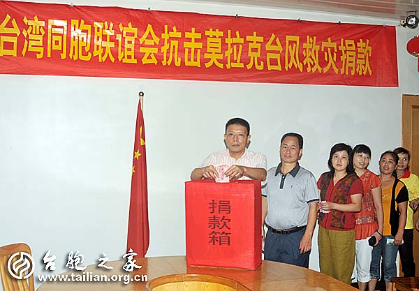 臺胞之家網(wǎng)8月20日訊:莫拉克臺風(fēng)侵襲以來,給臺灣南部造成了50年來最嚴(yán)重災(zāi)情。一方有難八方支援,南平市臺聯(lián)在接到省臺聯(lián)《關(guān)于救濟(jì)災(zāi)募捐活動的緊急通知》后馬上向各縣市臺聯(lián)寄出倡議書,各縣市臺胞紛紛響應(yīng)為島內(nèi)受災(zāi)鄉(xiāng)親捐款,截止到8月19日收到了68名南平臺胞和臺聯(lián)機(jī)關(guān)干部(不含臺盟盟員捐款)捐款共計(jì)11050元。
