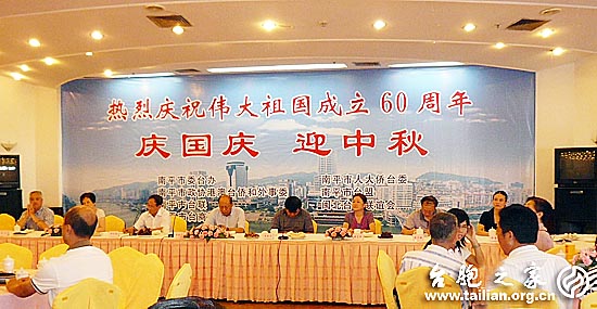 臺胞之家網(wǎng)訊:(圖/文 洪慧)9月24日下午,南平市臺聯(lián)、市臺辦、市臺盟、市人大僑臺委、政協(xié)港澳和外事委、閩北臺屬聯(lián)、南平臺商協(xié)會七涉臺部門聯(lián)合舉辦慶祝中華人民共和國成立60周年暨迎中秋座談會。會議由市臺辦主任邱長福主持,臺胞、臺商、臺屬代表近70人應(yīng)邀參加座談。