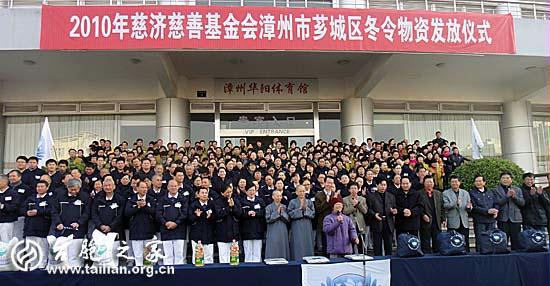 慈濟(jì)慈善基金會(huì)是臺(tái)灣慈善團(tuán)體,近年來已在漳州開展多次慰問活動(dòng)。此次活動(dòng)由漳州市民政局和慈濟(jì)慈善基金會(huì)聯(lián)合主辦,向薌城區(qū)6個(gè)街道4個(gè)鎮(zhèn)的低保戶、五保戶共4000多戶8000多人發(fā)放冬令物資,包括大米、食用油、棉內(nèi)衣和毛巾、牙膏等生活用品,總價(jià)值200多萬元。慈濟(jì)基金會(huì)冬令物資的發(fā)放,體現(xiàn)了慈濟(jì)人士的愛心與細(xì)心。