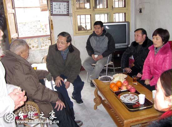 林書(shū)記一行在浦城縣看望了返鄉(xiāng)探親的老臺(tái)胞林金財(cái)和楊惠釗。老臺(tái)胞楊惠釗夫婦二人及四個(gè)兒女都定居臺(tái)灣,但因小女兒患病,他們二老大多數(shù)時(shí)間都和小女兒在浦城生活。楊惠釗患結(jié)腸惡性腫瘤去年在臺(tái)灣進(jìn)行了手術(shù),林書(shū)記詢(xún)問(wèn)了他的身體和家庭情況,叮囑隨行的浦城涉臺(tái)工作人員要多了解和關(guān)心老臺(tái)胞的生活。在林金財(cái)家中,他們?cè)缭缇驮陂T(mén)口迎接慰問(wèn)組,林書(shū)記看到他們一家其樂(lè)融融的很高興,希望第二代、三代要繼續(xù)密切和臺(tái)聯(lián)的聯(lián)系多參與臺(tái)聯(lián)工作。性格樂(lè)觀的老臺(tái)胞共同黃輝離休前是武夷山水電局長(zhǎng),今年85歲了,身體健康時(shí)熱衷于參加統(tǒng)戰(zhàn)部門(mén)組織的各類(lèi)活動(dòng),去年重病后虛弱了很多,他把病歷和患病前照片拿出來(lái),樂(lè)呵呵的跟大家說(shuō),前段吃了藥現(xiàn)在頭發(fā)又從白變黑了。林書(shū)記了拉著黃輝的手,和他聊當(dāng)年是怎么來(lái)到大陸和現(xiàn)在的生活情況,并希望老臺(tái)胞要把臺(tái)聯(lián)當(dāng)作自己的家,有困難多找臺(tái)聯(lián)幫忙。劉新云在戰(zhàn)爭(zhēng)中留下了兩處槍傷,多年來(lái)腿腳一直不方便,身為醫(yī)務(wù)人員的女兒女婿對(duì)老臺(tái)胞的照顧很細(xì)心,林書(shū)記感到很放心,詢(xún)問(wèn)了三代臺(tái)胞就業(yè)和生活情況,交待青年臺(tái)胞到外省也要與臺(tái)聯(lián)組織聯(lián)系,多參加所在地的臺(tái)聯(lián)活動(dòng)。每到一位老臺(tái)胞家中,林書(shū)記都與他們促膝交談,詳細(xì)詢(xún)問(wèn)老人們的身體和家庭情況有沒(méi)有需要幫助的困難,帶去黨和政府的深切關(guān)懷,送上新春?jiǎn)柡颍吓_(tái)胞們非常激動(dòng),喜悅之情溢于言表。