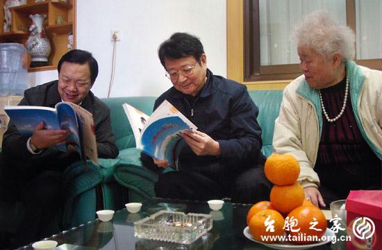 汪毅夫會長在晉江市臺聯(lián)老會長張麗卿家閱覽晉江臺聯(lián)成立三十周年畫冊 劉云燕/攝影