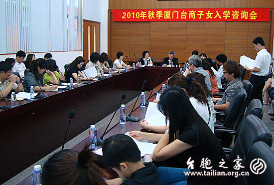 臺(tái)胞之家訊:6月11日上午,廈門市臺(tái)聯(lián)、市教育局、市臺(tái)商協(xié)會(huì)在臺(tái)商會(huì)館召開2010年在廈臺(tái)商子女秋季入學(xué)咨詢會(huì)。60多位臺(tái)商家長參加咨詢會(huì)。市臺(tái)聯(lián)盧紹荀會(huì)長、教育局基教處李燕娜處長、臺(tái)協(xié)陳正賢副會(huì)長出席會(huì)議。