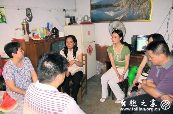 8月2日上午,柯連妹副會(huì)長(zhǎng)一行冒著酷暑高溫來(lái)到建甌,在建甌市委統(tǒng)戰(zhàn)部副部長(zhǎng)、民宗局局長(zhǎng)馬良杰,建甌市委臺(tái)辦主任陳麗芝的陪同下看望受災(zāi)臺(tái)胞江愛珍、潘來(lái)貴。在臺(tái)胞江愛珍家中,柯連妹副會(huì)長(zhǎng)與她親切交談,詢細(xì)了解她的家庭生活情況,以及在這次洪災(zāi)中受災(zāi)抗災(zāi)情況。江愛珍夫妻下崗十多年,沒有穩(wěn)定的經(jīng)濟(jì)來(lái)源,去年江愛珍滿退休年齡后,每個(gè)月能從社保領(lǐng)到一千元退休金,但是一家五口人還是擠在80年代建的破舊公房里,這次洪災(zāi)房子里進(jìn)水一米多高,我們?cè)诜孔拥膲Ρ谏线€可以看到洪水浸泡的痕跡。當(dāng)柯連妹副會(huì)長(zhǎng)把慰問(wèn)金交到她手中時(shí),她滿含深情地說(shuō):“臺(tái)聯(lián)多年來(lái)對(duì)我們家一直很關(guān)心,還專程來(lái)看我們真的很感謝。”臺(tái)胞潘來(lái)貴夫妻二人也下崗多年,現(xiàn)經(jīng)營(yíng)著一個(gè)食雜店,這次水災(zāi)食雜店被淹,部分商品沒有及時(shí)搬出,墻面被水泡壞,受災(zāi)情況嚴(yán)重。在各方面的關(guān)心幫助下,現(xiàn)在店鋪正在重新裝修,小店不久又將恢復(fù)了往日的熱鬧。潘來(lái)貴的妻子告訴我們,她兒子今年剛考上蘭州大學(xué)研究生,柯連妹副會(huì)長(zhǎng)向她表示祝賀,希望年輕一代臺(tái)胞好好努力,將來(lái)為社會(huì)貢獻(xiàn)更大的力量。