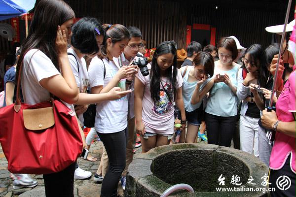 華僑大學臺生們在和貴樓饒有興趣地觀看陰陽井 蔣碧輝/攝影