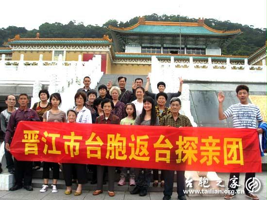 福建晉江是著名僑鄉(xiāng),也是臺胞的主要祖籍地之一,現(xiàn)有老臺胞(1949年12月31日前出生)近200多人,出于各種原因,尚有100多人從未回過臺灣老家,他們期盼能在有生之年回一趟兒時的家園。去年3月,在福建省臺聯(lián)理事、泉州市人大代表、晉江市黨代表詹淑華的反映下,晉江市委、市政府高度重視此建議,晉江市政府在極短時間內(nèi)就研究并批復(fù)撥付專款,用以幫助老臺胞圓回鄉(xiāng)省親夢,繼首批56名臺胞于2010年6月1日-6日返臺探親后,本次又有31名團(tuán)員得以返鄉(xiāng)探親,圓了晉江臺胞縈繞心頭的省親之夢。(圖/文 泉州臺聯(lián) 劉云燕)