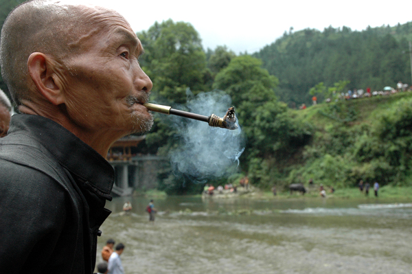 莫道黔叟不知愁, 歲月留痕費(fèi)綢繆。 吧噠一口神仙似, 夜郎乾坤話從頭。