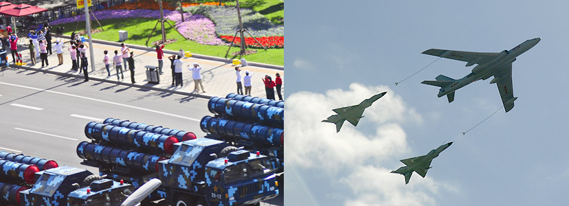 不是路邊的人群對從身邊轟隆而過的導(dǎo)彈視而不見,而是頭頂上的戰(zhàn)鷹更吸引人們的眼球。 徐波 攝影