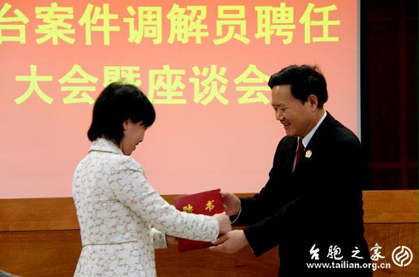 福州市臺聯(lián)副會長林鴻榕(左)受聘本市第二批涉臺民商事案件特邀調(diào)解員 葉彭清/攝影
