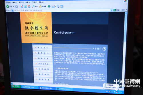 臺灣泛亞人力資源管理顧問公司總監(jiān)曾翊銘向記者介紹了網(wǎng)站的相關情況,他說“兩岸聯(lián)合獵才網(wǎng)”的目標是為兩岸企業(yè)和高階人才搭建常態(tài)化的對接平臺,使人才和企業(yè)能夠各取所需,以加快兩岸人才合作步伐,未來網(wǎng)站將力圖成為大中華區(qū)的高級人才網(wǎng)站。他并且樂觀地表示,未來兩岸關系更為明朗、更為開放的時候,大陸人才也可以通過這個平臺前往臺灣尋求機會。