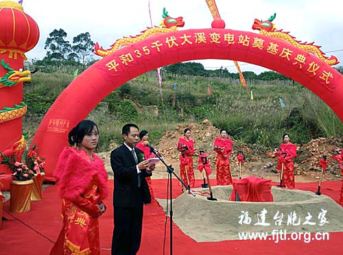 福建臺(tái)胞之家網(wǎng)11月28日訊(圖文/莊建東、李福平、張永和、黃國熙)近日,臺(tái)灣海基會(huì)董事長江丙坤祖籍地福建省平和縣大溪鎮(zhèn)傳來捷報(bào),平和縣大溪鎮(zhèn)新榮村工地上歡聲笑語,鑼鼓喧天,彩旗招展,平和35千伏大溪變電站奠基慶典儀式在這里隆重舉行。漳州電業(yè)局副局長羅斌、助理調(diào)研員曾阿明、平和縣委副書記何金才、副縣長賴敏生、電力公司經(jīng)理陳建南、大溪鎮(zhèn)黨委書記楊坤生等領(lǐng)導(dǎo)出席儀式,并共同為該工程奠基培土。