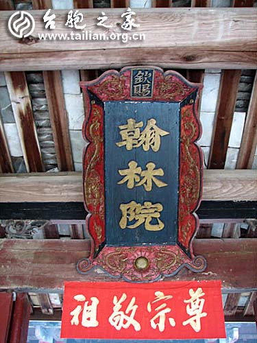 南靖縣和溪鎮(zhèn)麟野社聚斯堂內(nèi)“欽賜翰林院牌匾”