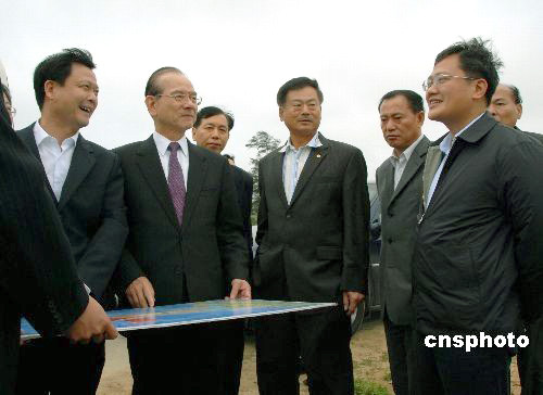 3月28日,中國(guó)國(guó)民黨副主席林豐正伉儷一行回到祖籍地福建漳浦的石榴鎮(zhèn)盤(pán)龍村祭祖、參訪(fǎng)。圖為林豐正(左二)參觀古雷港經(jīng)濟(jì)開(kāi)發(fā)區(qū)及建設(shè)中的一德石化碼頭。 中新社發(fā) 藍(lán)智偉 攝