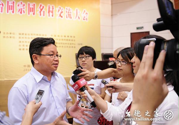 全國(guó)臺(tái)聯(lián)副會(huì)長(zhǎng)楊毅周接受新聞媒體記者采訪。徐波/攝影