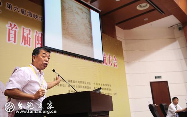 臺(tái)灣彰化卦山文化協(xié)會(huì)理事長(zhǎng)蔣敏全作題為《入墾臺(tái)灣彰化縣花壇鄉(xiāng)先民聚落分布》的發(fā)言。鄭嵐/攝影