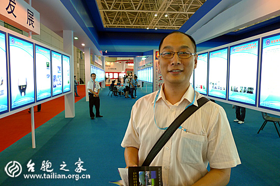 臺(tái)資“馥立貴節(jié)能科技有限公司”業(yè)務(wù)經(jīng)理藍(lán)先生對節(jié)能產(chǎn)品信心滿滿 古路/攝影