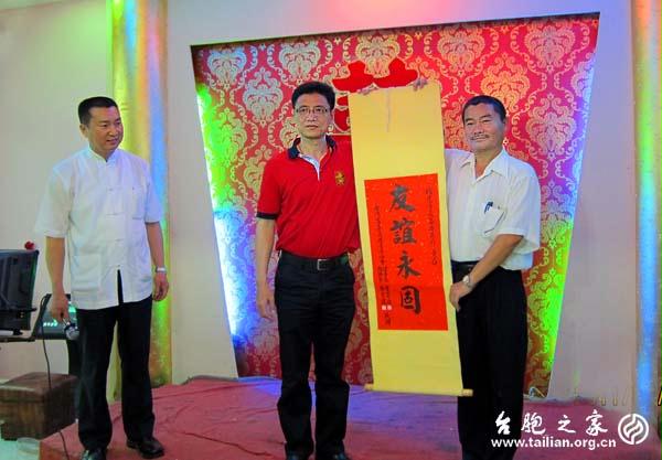 臺(tái)灣參訪團(tuán)向長泰縣臺(tái)聯(lián)贈(zèng)送書有“友誼永固”書法作品 圖片提供/李福泰