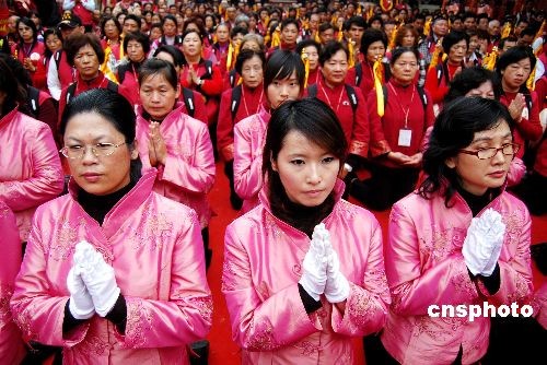 中新社東山二月十七日電 (謝漢杰)二月十七日,由臺灣嘉義市天后宮牽頭組織的全島二十六家媽祖宮廟的六百五十名臺胞信眾組成的進(jìn)香團(tuán),在海峽兩岸神緣祖廟福建省東山島銅缽村媽祖廟(凈山名院)舉行隆重的祭祖典祀、誦經(jīng)祈福等活動。